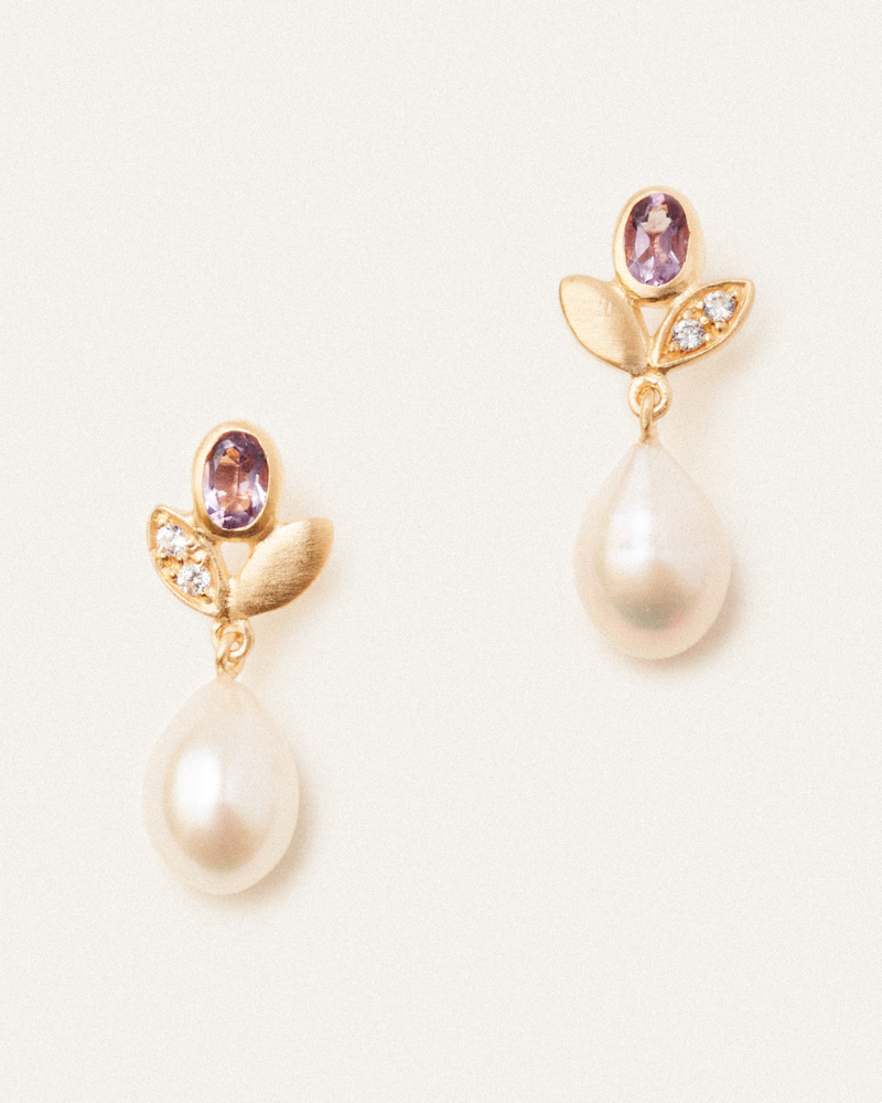 Dahlia earrings with pink amethyst and pearl