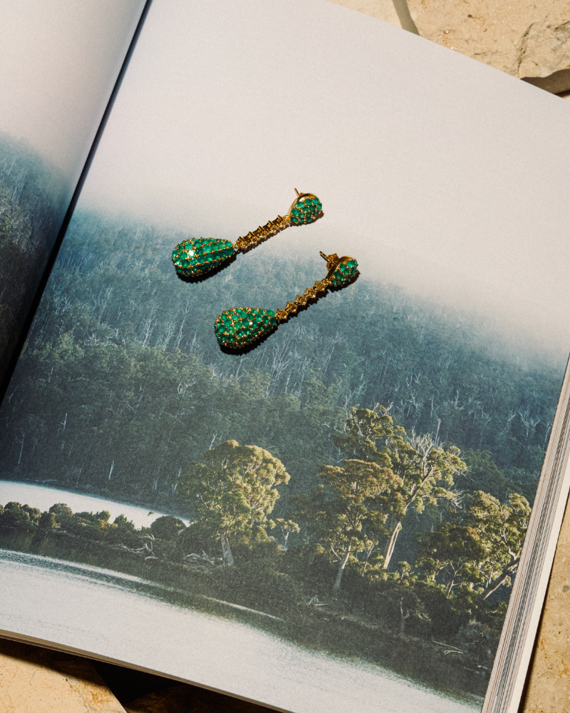 Our show-stopping pendulum earrings are a stunning statement style. Handcrafted in 925 sterling silver and finished with an 18 carat gold vermeil. These earrings are intricately finished with beautiful green onyx stones and white topaz.