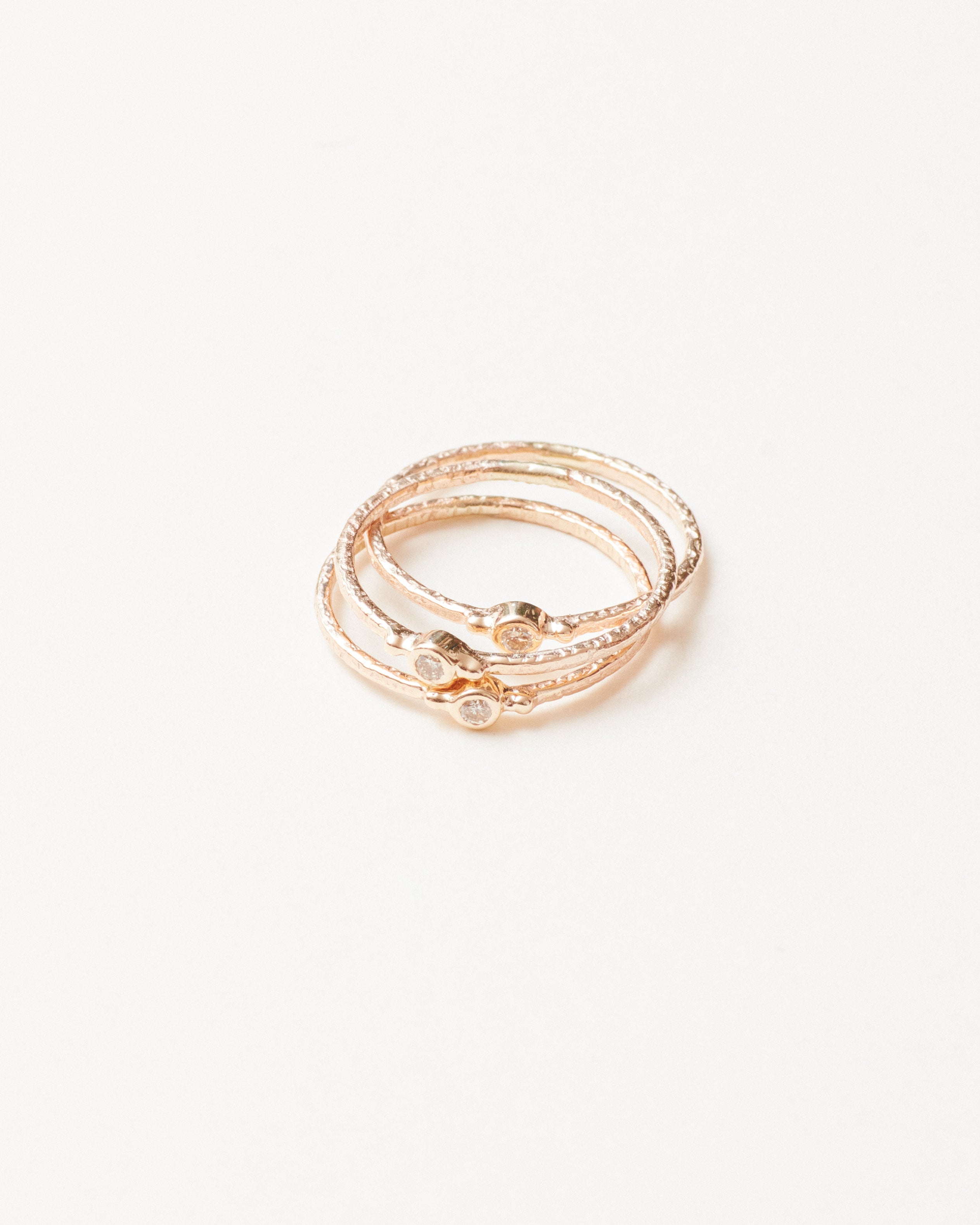 Our popular diamond trilogy set is crafted in 9 carat solid gold. Each individual ring features a set diamond. This style is also available in 14 carat solid gold.
