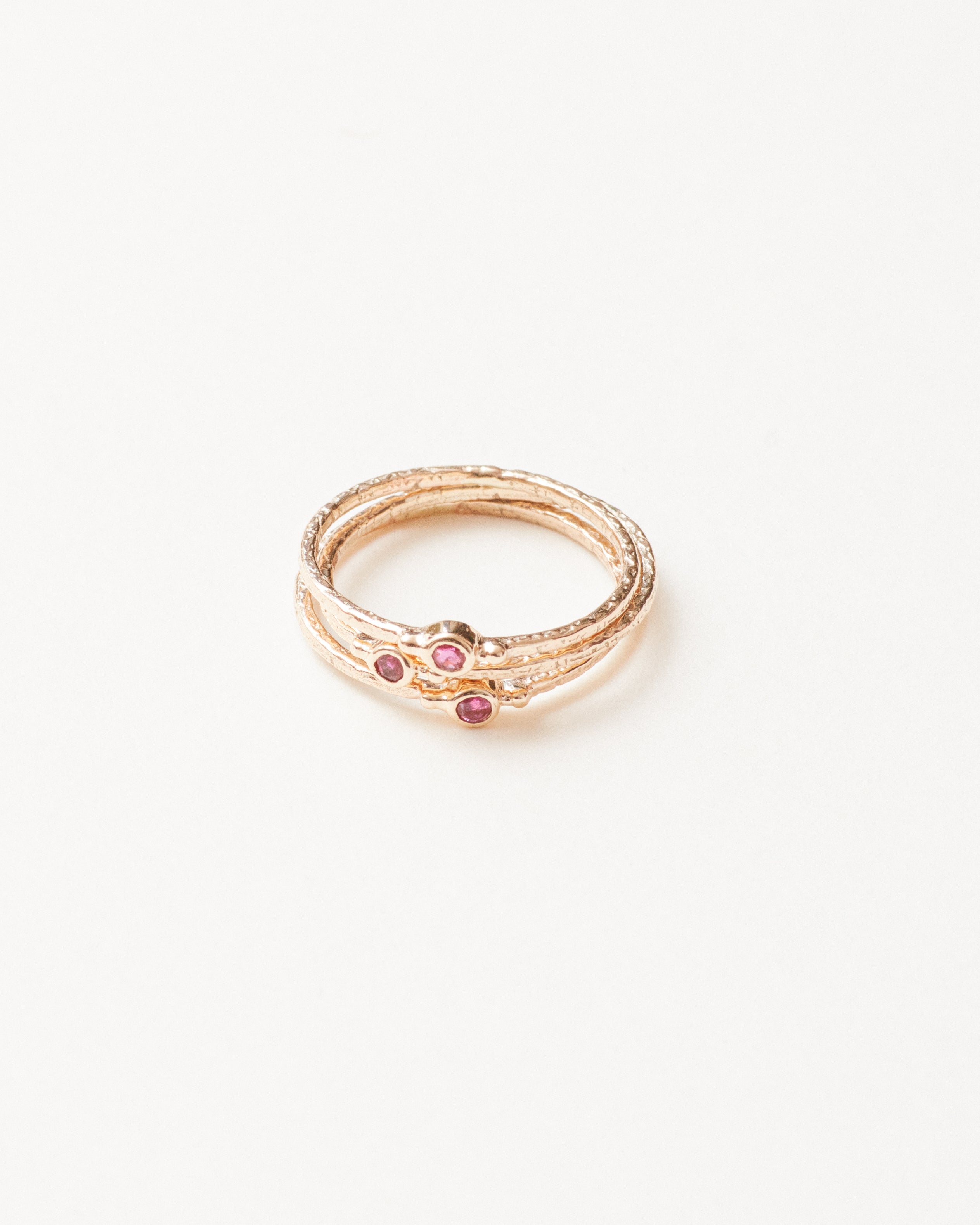 Our popular ruby trilogy set is crafted in 9 carat solid gold. Each individual ring features a set ruby. This style is also available in sapphire and emerald.