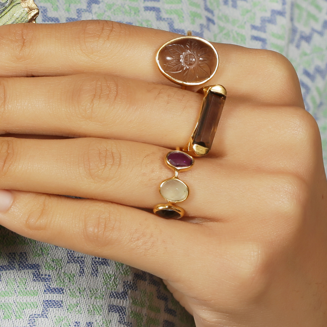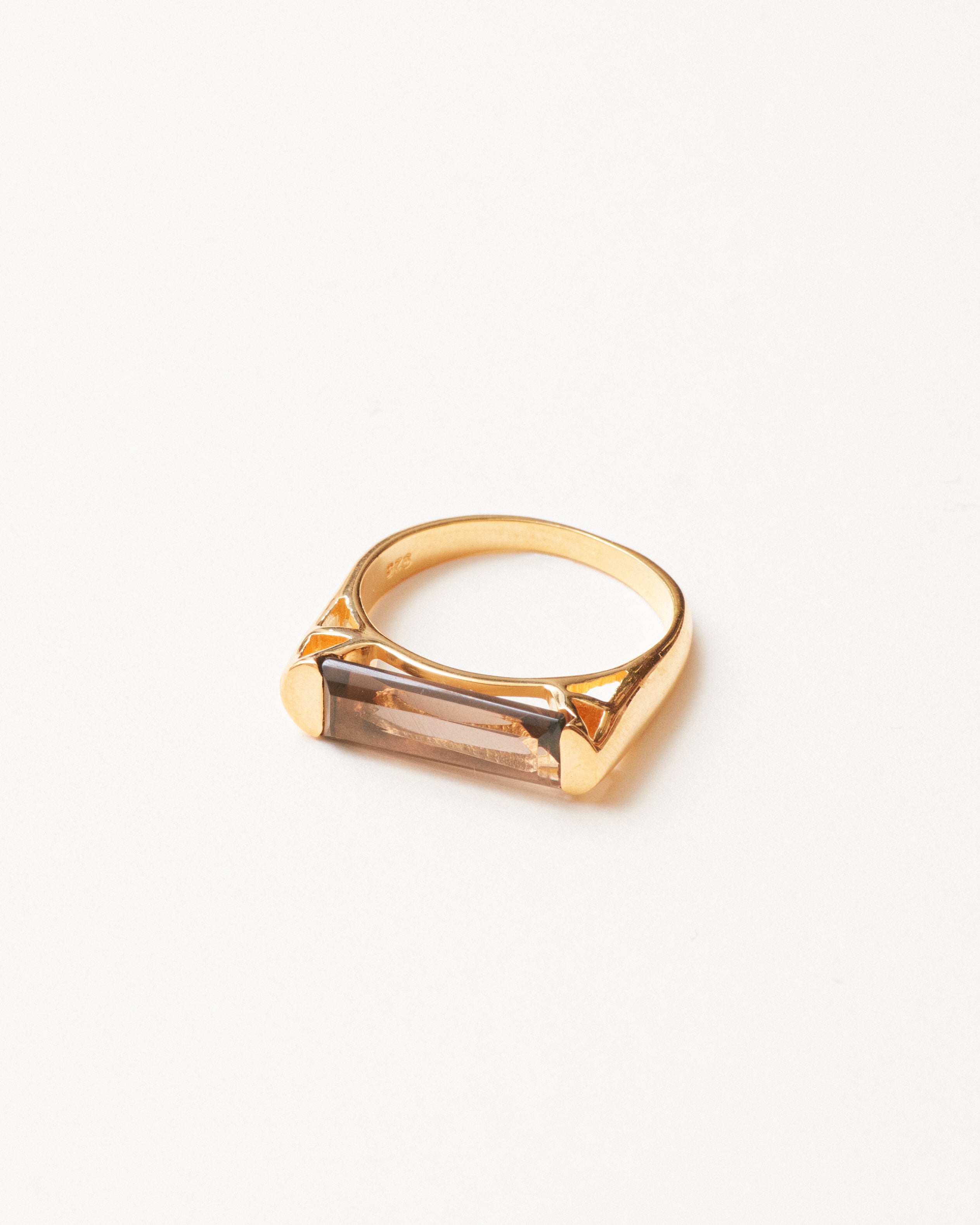 Our stunning deco style Astra rings are subtle and stylish but also make a statement. Finished with one long set smoky quartz gemstone.